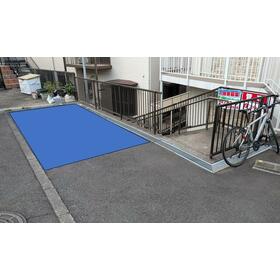 駐車位置:写真青色部分(縁石内側&階段入口を塞がない範囲)