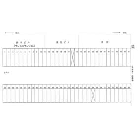 区画図 全63台 北西側道路から敷地内に入って各区画に駐車する形です 空き状況についてはお問い合わせください