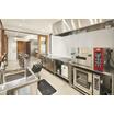 IHコンロ4口、ベーカリー用ミニデッキオーブン、コンベクションオーブン、シンク、冷凍冷蔵庫、冷凍冷蔵コールドテーブル、製氷機、
