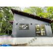 黒い色調のシックな外観が周辺の緑に映えます。