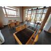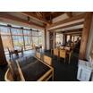 しっかりとした梁がむき出しになっており、西側の客席は全面ガラス張りです。