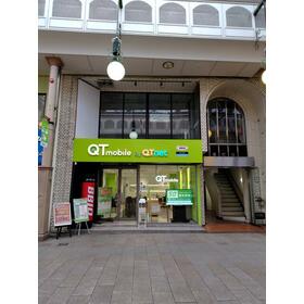 ベルナード観光通りアーケード内2階。アーケード側ガラス面広く視認性高い。1階既存店舗QTモバイル。