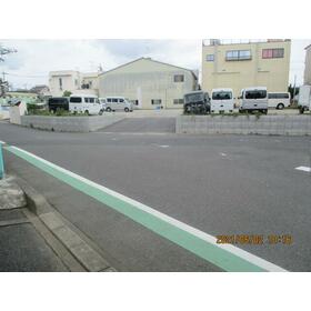 約230坪の駐車場物件です。運送会社様等御検討いただければと思います。道路より高い為幅7m程のスロープです。前面道路幅員6mですが入口前は合流の為道幅が広くなっており大型車も可能です。 |