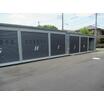 建物は軽量鉄骨造・平屋建てで、使用部分面積は約19.6㎡。間口3.13mの電動シャッター付きで、車の出入りが容易です。内部には人感センサーライト、温度センサーライト、温度センサー換気扇を備え、通気性と防犯性を両立。敷地内には防犯カメラも設置されています。