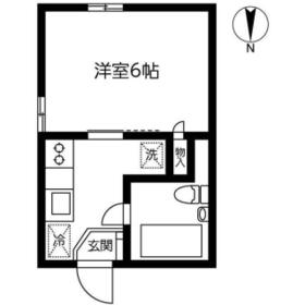間取り 1K(洋6K) 専有面積 20.00m²