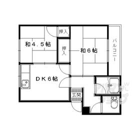 間取り 2DK(和6×和4.5×DK6) 専有面積 34.70m²