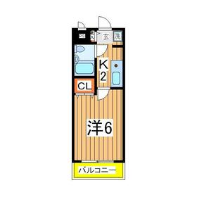 間取り 1K(洋6 K2) 専有面積 17.60m²