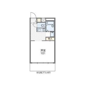 間取り 1K(洋10 K2) 専有面積 23.18m²