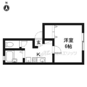 間取り 1K(K2×洋6) 専有面積 20.80m²