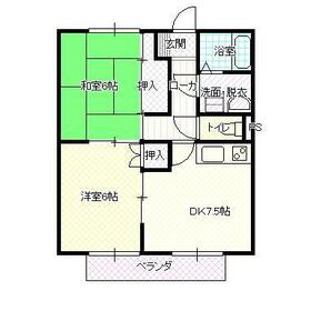 間取り 2DK(和6 洋6 DK7.5) 専有面積 54.95m²