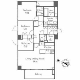 間取り 3LDK(洋 5.0/洋 6.0/洋 9.6/ LD 18.0/ K ) 専有面積 105.94m²