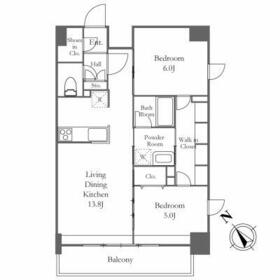 間取り 2LDK(洋 5.0/洋 6.0/ LDK13.8/) 専有面積 58.95m²