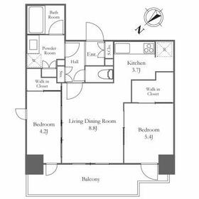 2LDK(洋 4.2/洋 5.4/ LD 8.8/ K 3.7/) |