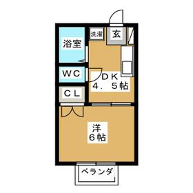 間取り 1DK(DK4.5 洋室6) 専有面積 23.18m²
