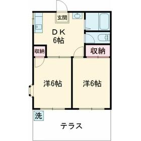 間取り 2DK(和6、洋6、DK7) 専有面積 37.00m²