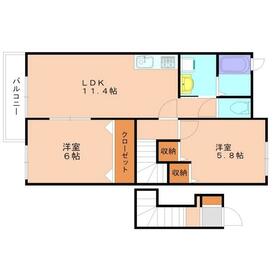 間取り 2LDK(洋室5.8・洋室6・LDK11.4) 専有面積 55.81m²