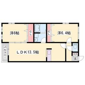 間取り 2LDK(LDK13.5・洋6.4・洋6) 専有面積 57.00m²