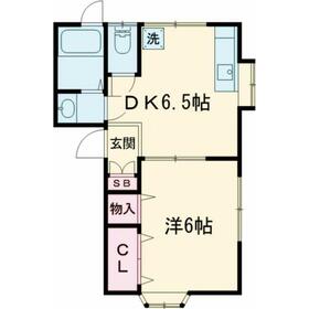 間取り 1DK(DK6.5、洋6) 専有面積 28.73m²