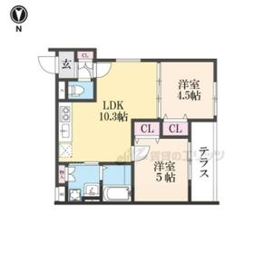 間取り 2LDK(LDK10.3×洋5×洋4.5) 専有面積 44.41m²