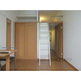 室内洗濯機置場、冷蔵庫、ロフト、給湯、フローリング、クッションフロア、プロパンガス、エアコン、家具付き、照明器具 |