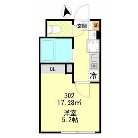 間取り 1K(洋5.2) 専有面積 17.28m²