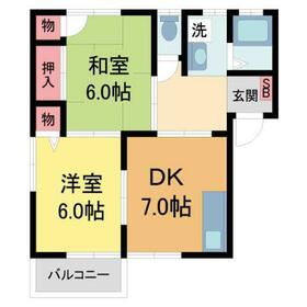 間取り 2DK(DK7 洋6 和6) 専有面積 48.00m²