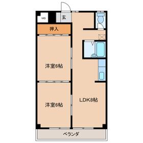 間取り 2LDK(LDK8 洋6 洋6) 専有面積 53.46m²