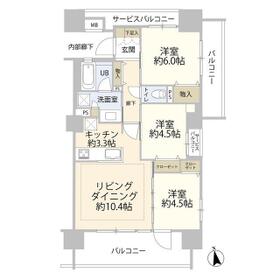間取り 3LDK(LD10.4 K3.3 洋6 洋4.5 洋4.5) 専有面積 65.27m²