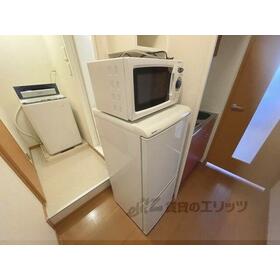 設備・サービス 室内洗濯機置場、冷蔵庫、給湯、フローリング、クッションフロア、プロパンガス、エアコン、家具付き、照明器具