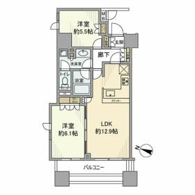間取り 2LDK(LDK12.9、洋5.5、洋6.1) 専有面積 55.76m²