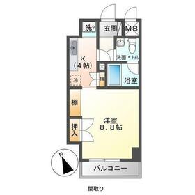 間取り 1K(洋8.8 K4) 専有面積 28.70m²