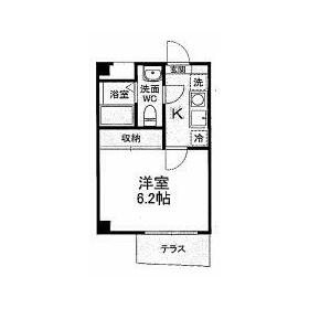 間取り 1K(洋6.2、K2) 専有面積 20.34m²