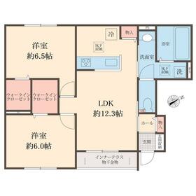 間取り 2LDK(LDK12.3・洋室6.5・洋室6) 専有面積 58.38m²
