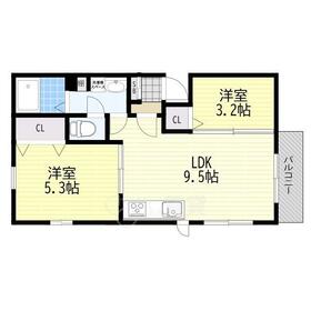 2LDK(LDK 9.50/洋室 5.30/洋室 3.20) |