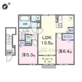 2LDK(LDK13.5×洋6.4×洋5.3) |