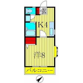 間取り 1K(洋室8.0帖 K4.0帖) 専有面積 25.41m²