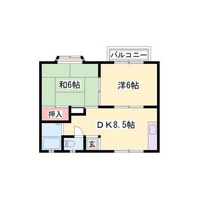間取り 2DK(DK8.5・洋6・和6) 専有面積 39.74m²