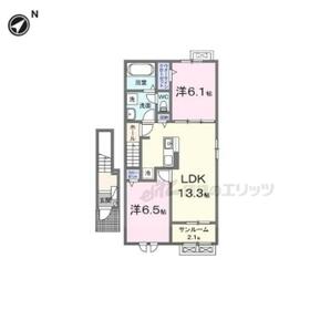 2LDK(LDK13.3×洋6.1×洋6.5) |