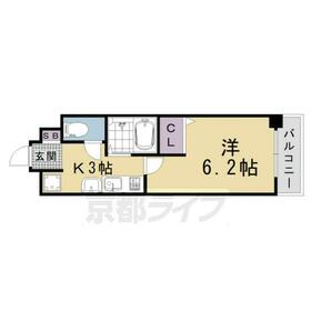間取り 1K(洋6.2×K3) 専有面積 25.10m²