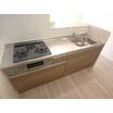 カウンターキッチン、システムキッチン、独立型キッチン、3口以上コンロ、ガスコンロ可、グリル |