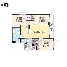 3LDK(LDK13.9×洋6.2×洋5.9×洋5.4) |