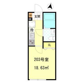 間取り 1K 専有面積 18.63m²