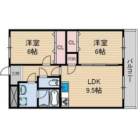 間取り 2DK(洋6.0 洋6.0) 専有面積 54.00m²