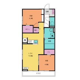 2LDK(LDK13.8 洋室6.2 洋室4.6) |
