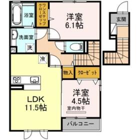 間取り 2LDK(洋室4.5・洋室6.1・LDK11.5) 専有面積 60.90m²