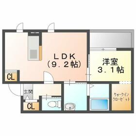 間取り 1LDK(LDK9.2、洋3.1) 専有面積 33.21m²