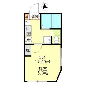 間取り 1K 専有面積 17.39m²