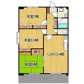 3LDK(LDK12.4 洋7 洋6.9 和6) |