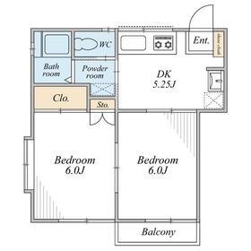 間取り 2DK(DK5.25・洋室6・洋室6) 専有面積 37.25m²