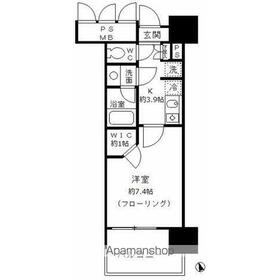間取り 1K(K3.9 洋7.4) 専有面積 26.02m²